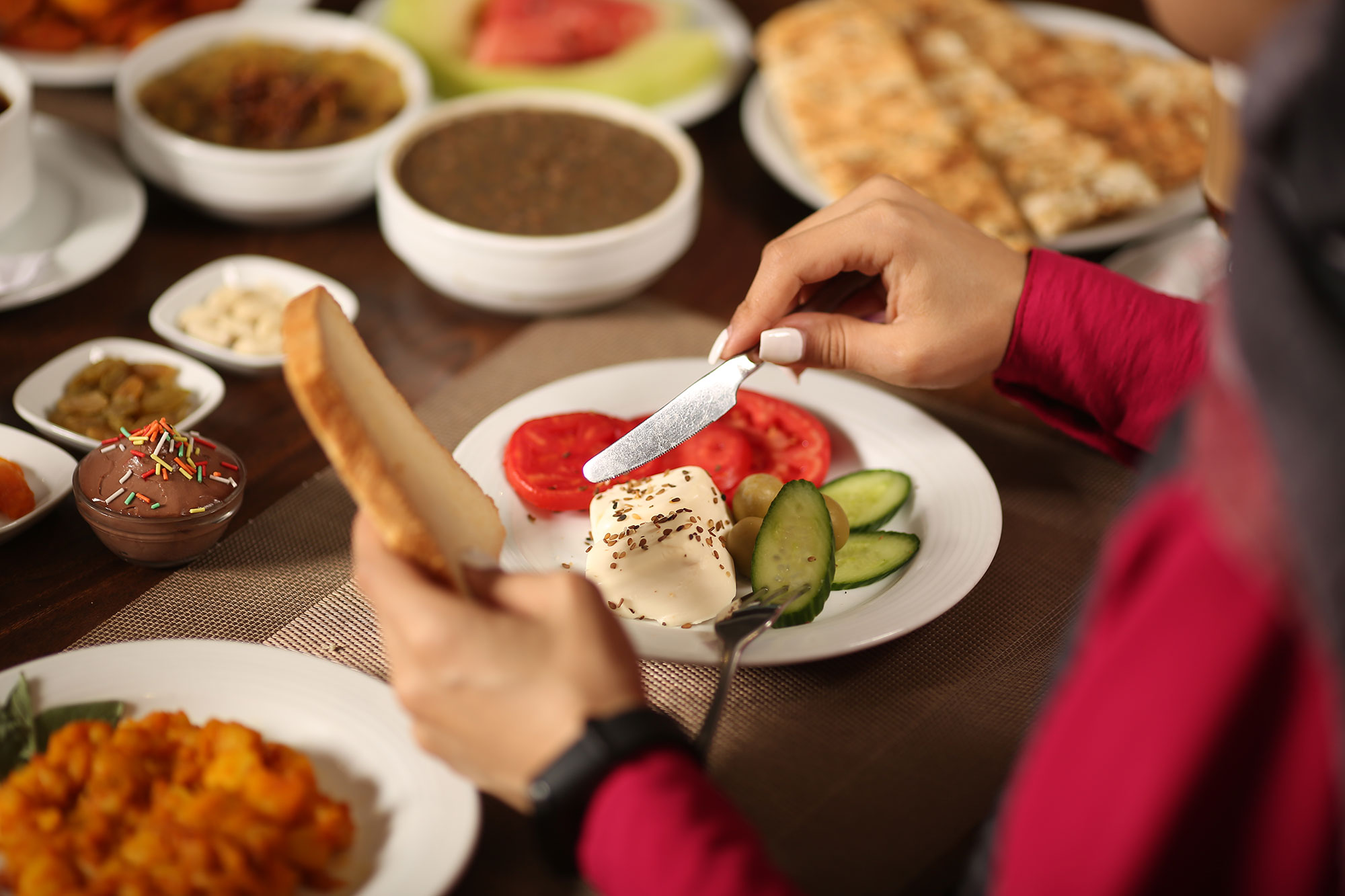 Traditional kebab from delicious mix of minced beef, lamb, herbs and walnut served with sides and barbecued tomato